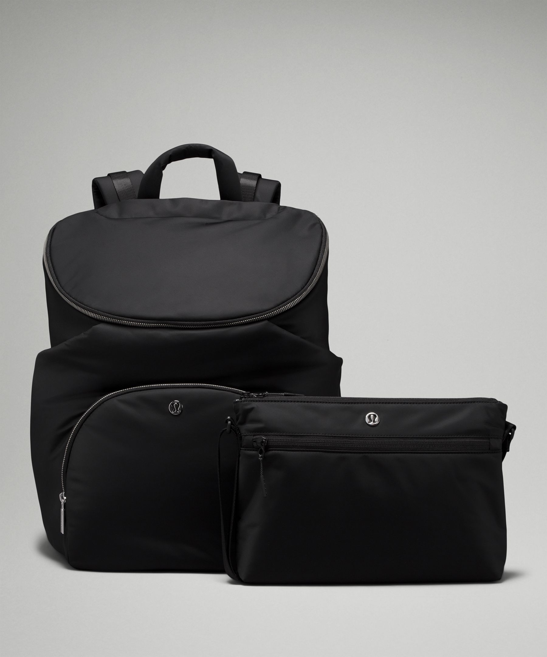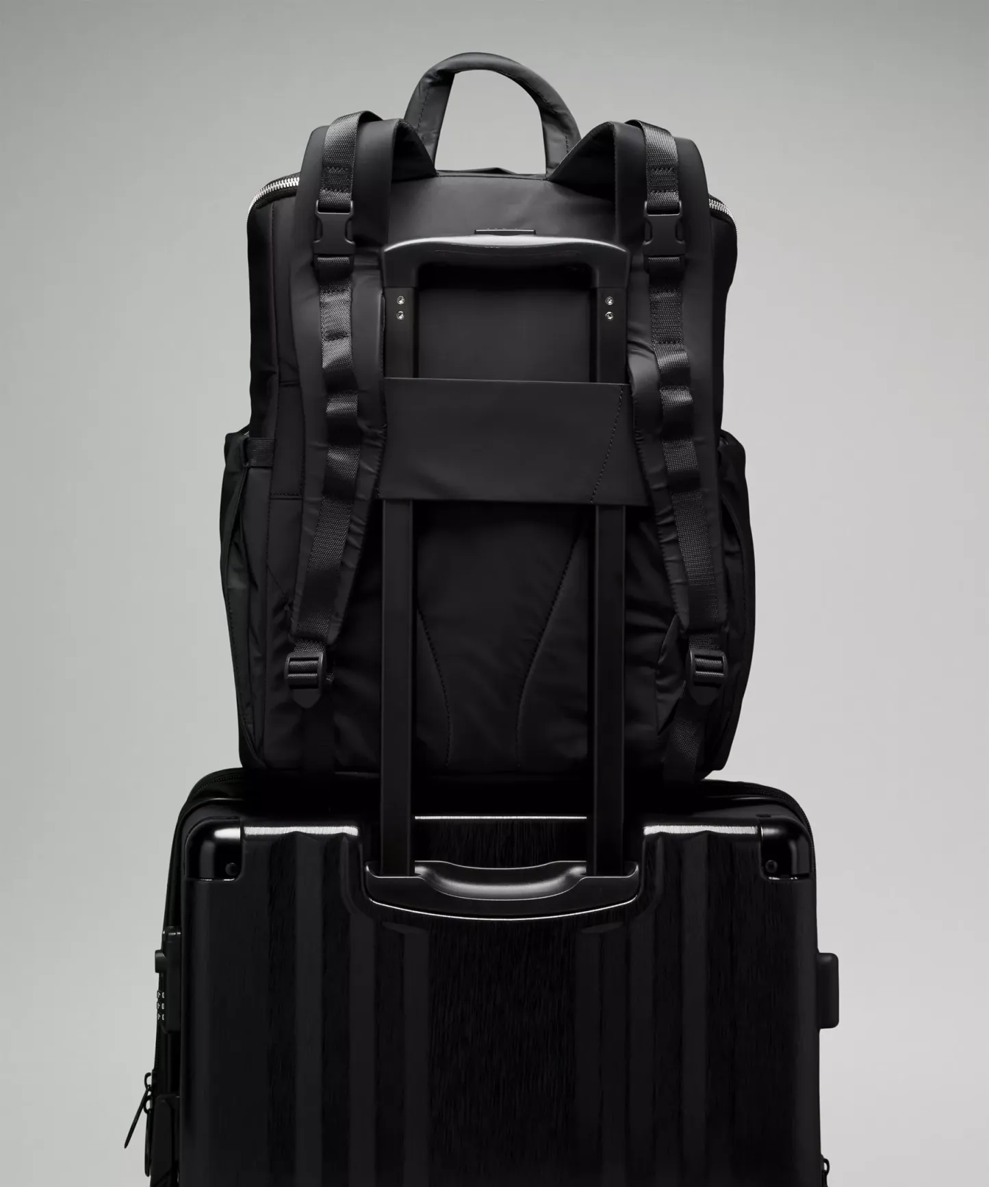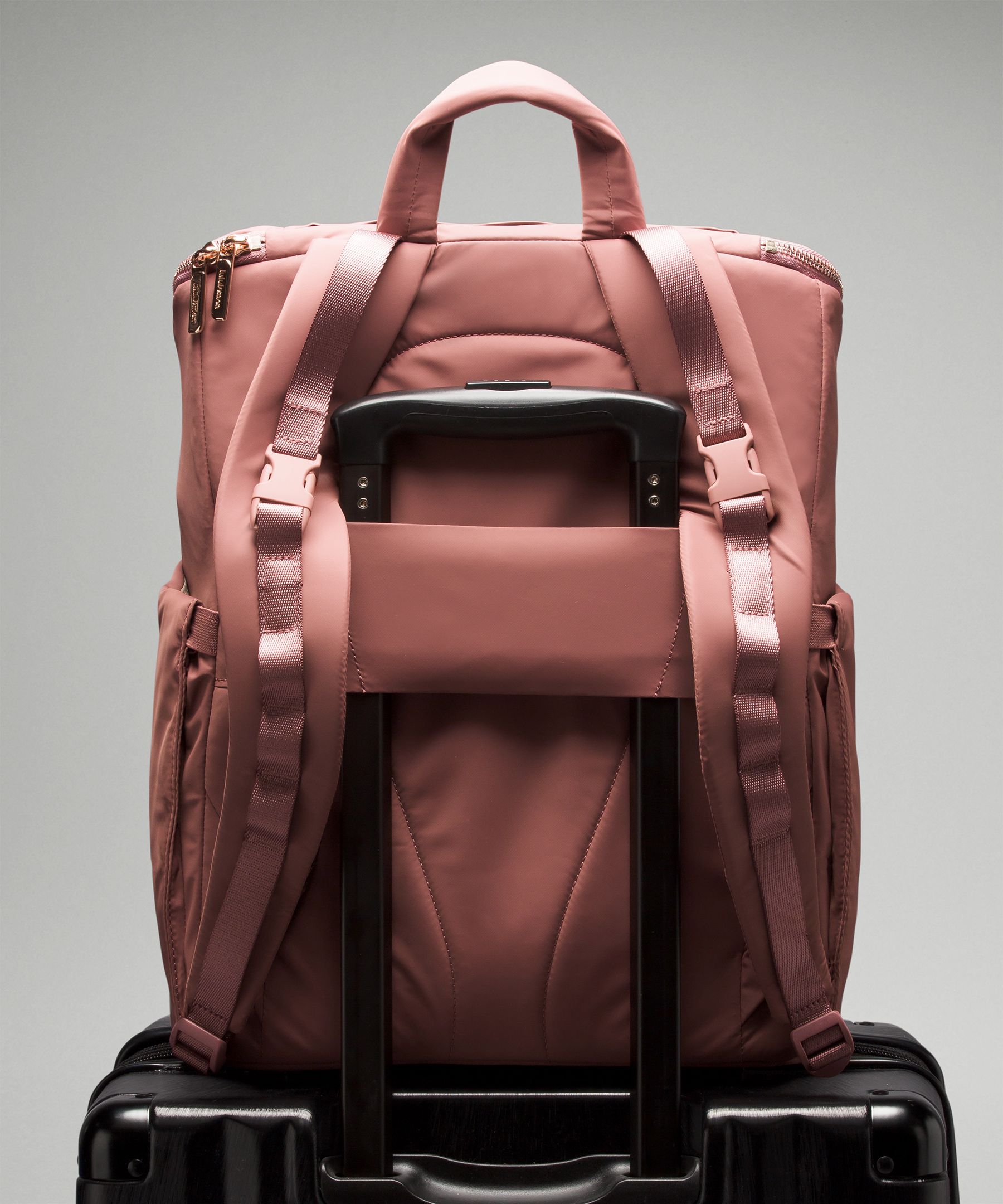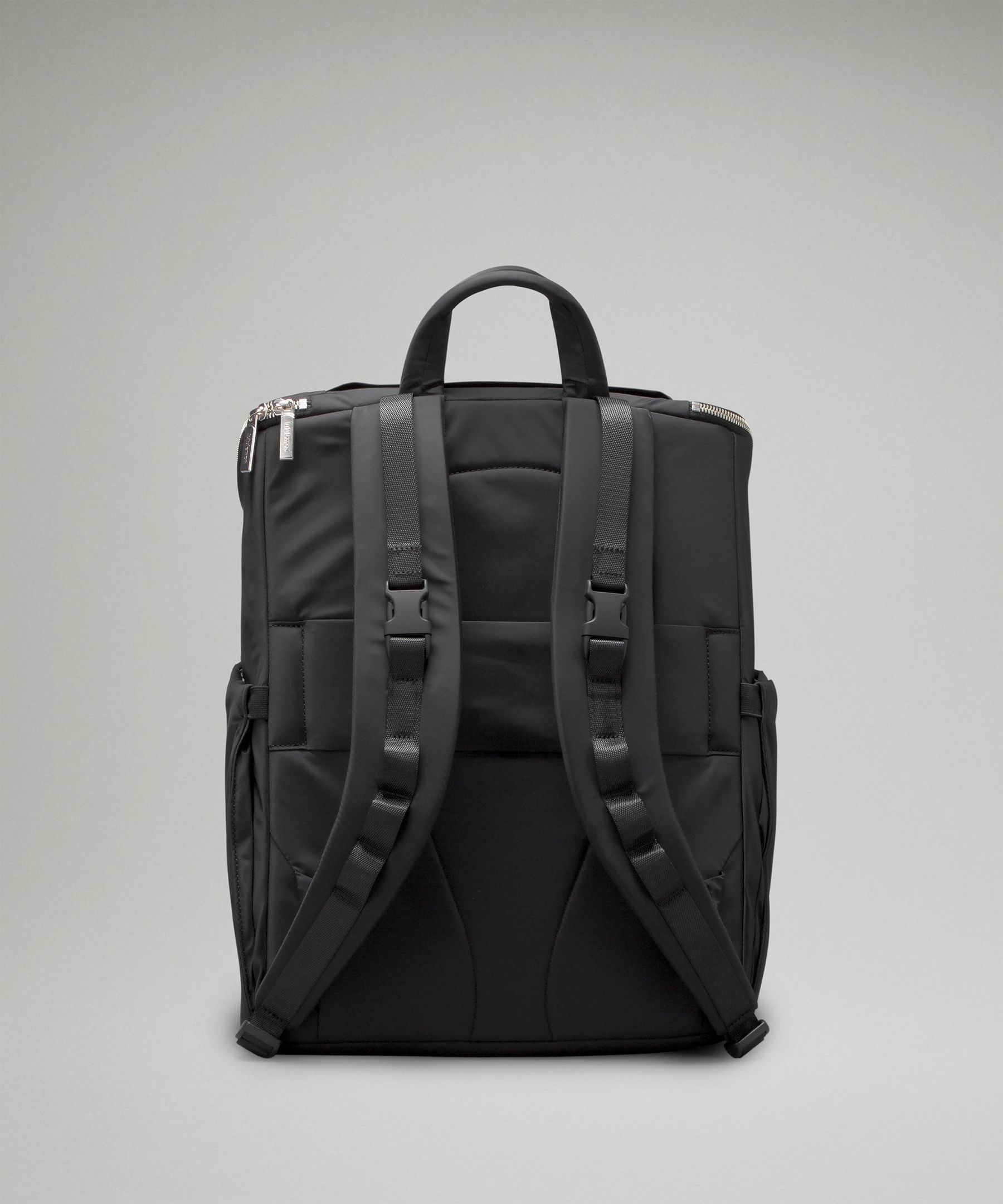 Unclip backpack straps and clip bag onto stroller