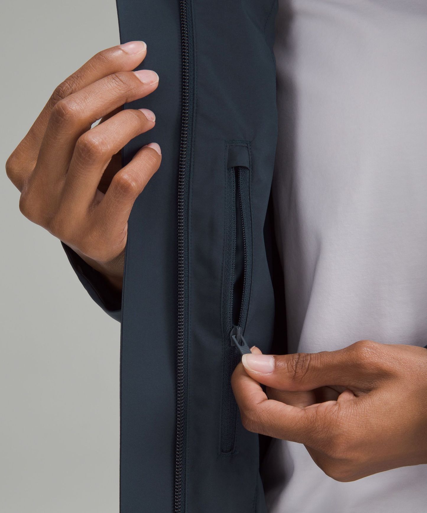 Zippered pockets with a hidden phone sleeve