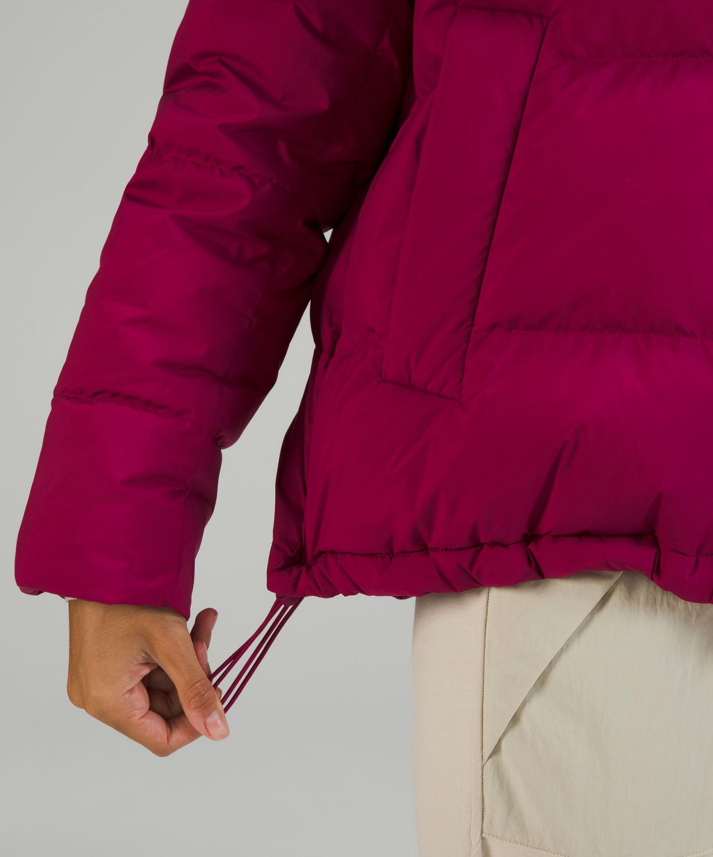 Cinch the interior waist and hem drawcord to customize your fit